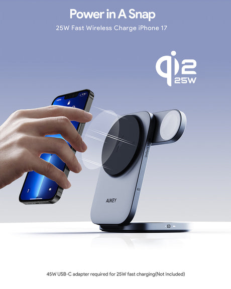 AUKEY MagFusion L 2-in-1 Foldable Qi2 Magnetic Fast Wireless Charging Station